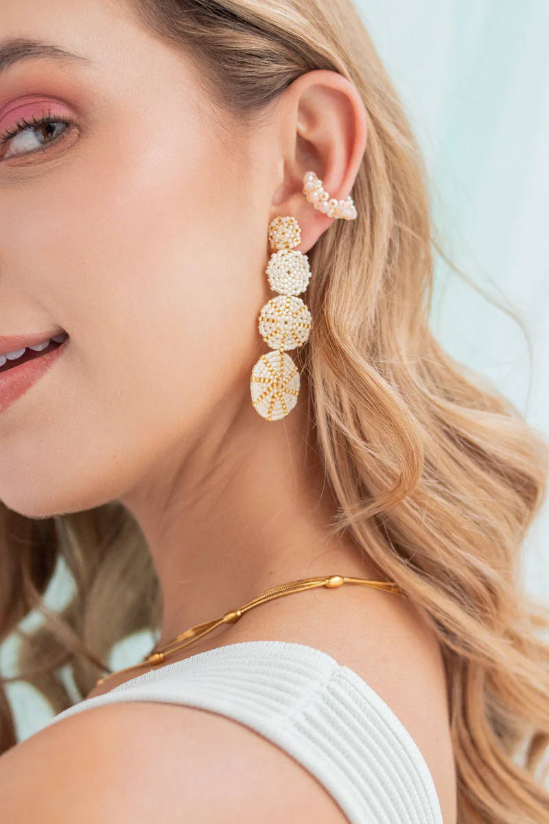 Woven with premium Japanese beads, blending matte ivory and gold, timeless design, and Colombian craftsmanship.